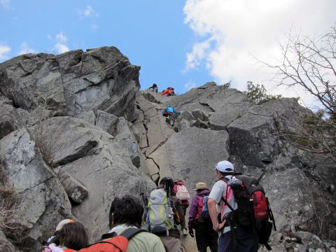 12:05 頂上到着っ 山頂は岩場であまり広くなく、少なくない登山者で埋め尽くされていました。わりと急ぎ足で登ったので、予定より30分程早く到着です。これならバスは間に合うかなと。