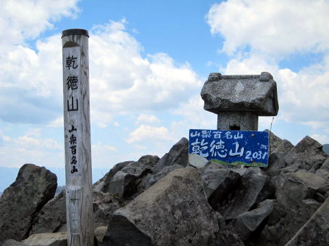 途中で登山帰りの年配の方と話したのですが(乾徳山には何回も登ったらしいですが)、こんなにきれいに富士山が見えたのは、初めてだとのことです。そりゃよかった!