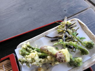 左にあるのはタラの芽です。大きくて一口では食べきれません。