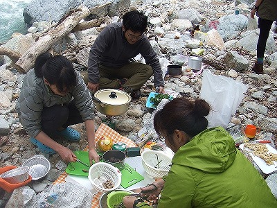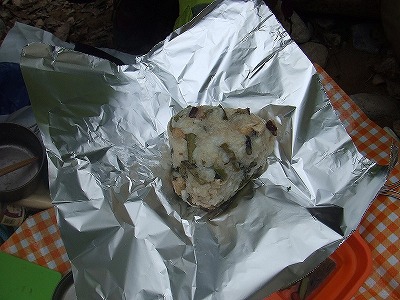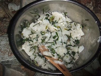 あまった山菜ごはんは、おにぎりにして、強力くんの行動食に。