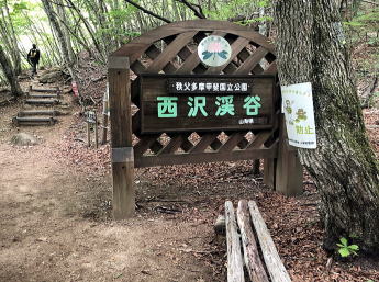 塩山駅から車で⻄沢渓谷の駐車場へ。無料の駐車場は満車でした。