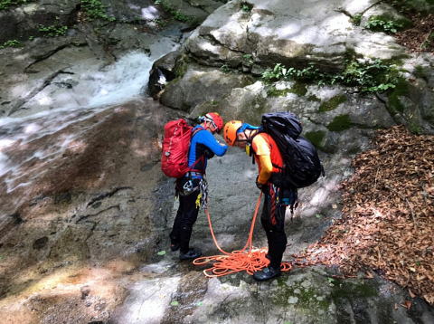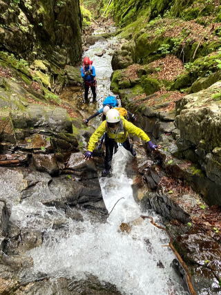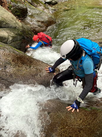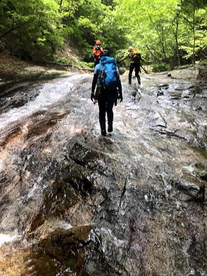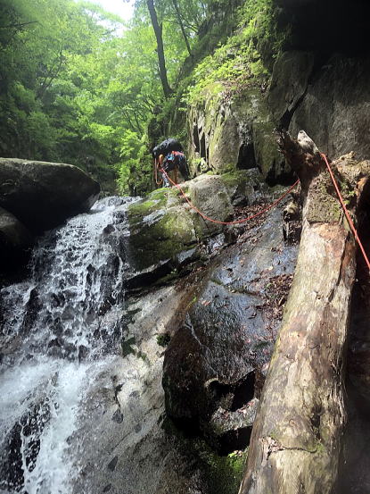 左岸を高巻き。ヒマラーさんリード。高度感があってロープを出すかどうか迷ったが今回は出さなかった。懸垂もせず10:40滝上に出ました。