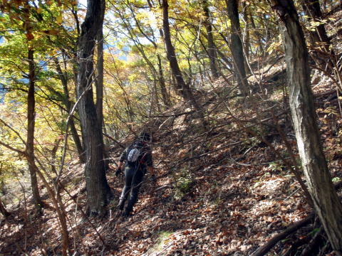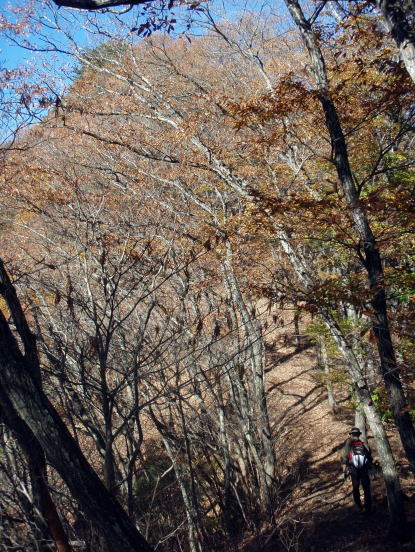広くなった尾根を登っていきます。道がつづら折れに切ってあり、右に行ったり左に行ったり、時々はずれて直登しました