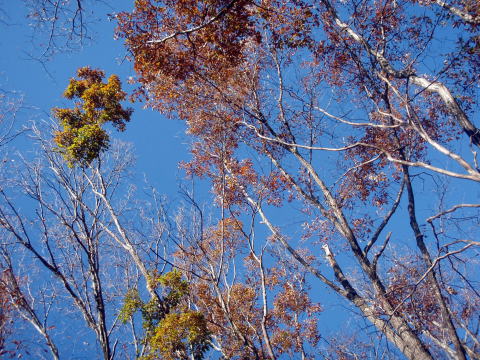 赤い色はないけれど、青い空にナラの黄葉がとてもきれいでした