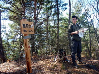 古いベンチを見送って、山頂標識も新しい棚洞山(1201.4m)です
