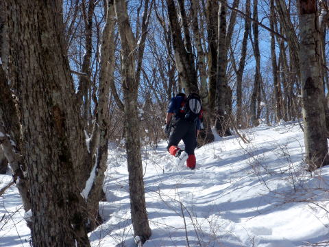 痩せた尾根を慎重に戻ります
