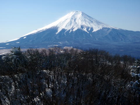 急な斜面を木につかまりながら登り切ると、目の前に富士山
