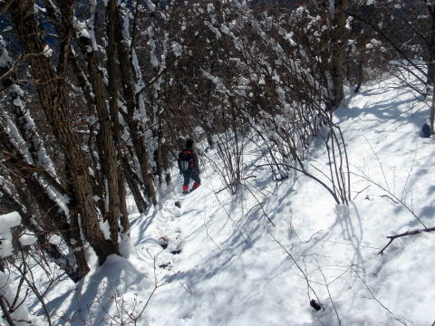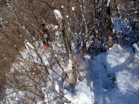 ぐぐっと下って、ちょっと痩せた尾根を通って、壁にぶつかる