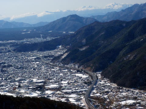 遠く南アルプスの山が見えています
