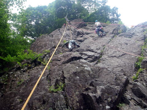 お隣さんもたぶん初心者講習、そのまたお隣さんは大人数ベテランの救助訓練、今日は賑やかな岩場です