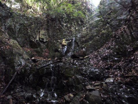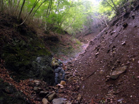 この先、水の涸れた大滝は巻いて、沢の詰めになります。早く登山道に抜け出たい