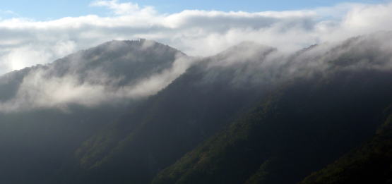 ガスのかかる塔ノ岳と表尾根を見て