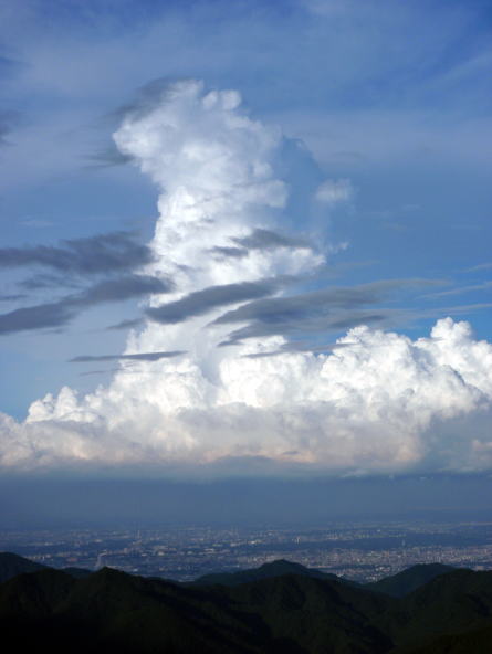 東京の向こうに積乱雲が大きく伸び上がっているのを見て