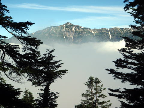 向こうに見えているのは、霞沢岳のかたまりです。たぶん