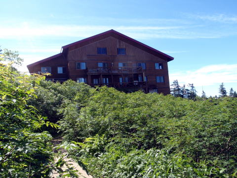 山荘前の広場には、登山者がぞくぞく到着してきて今日の山荘は大混雑になりそうです