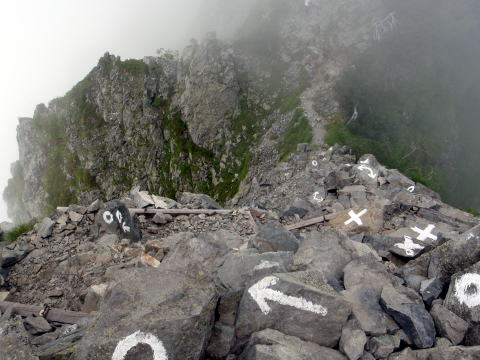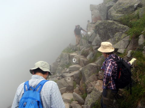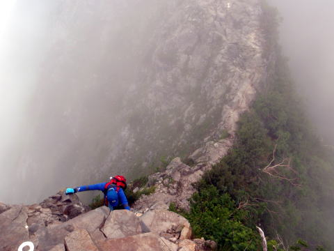 ピラミッドピーク手前の鞍部への下り、両側が切れ落ちてちょっと怖いね。足場はしっかりしているけど・・・