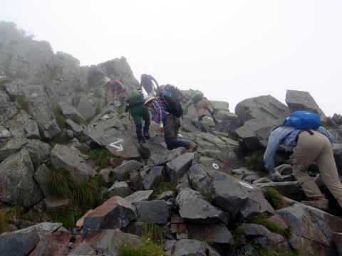 山頂付近では、ガスがかかって見えなくなる時間が長くなってきました