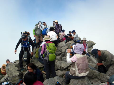 狭い山頂は人がいっぱいで、座るところも入れ替わりです