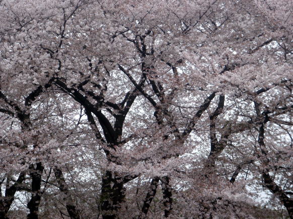 4月4日 午前中10時頃まで雨降り、そのあとも花冷えの寒い一日でしたが、公園内は花酔いの熱気でちょっとだけ暖かく感じました
