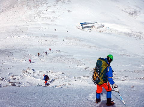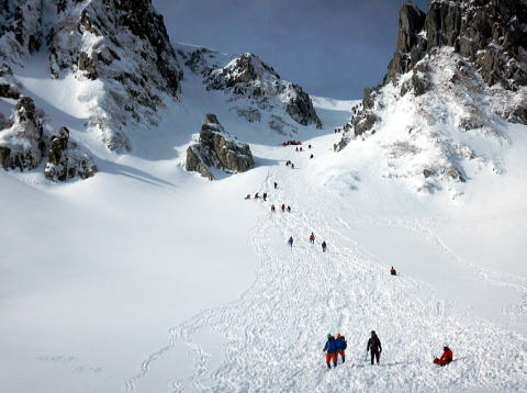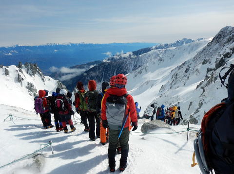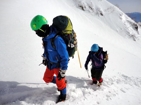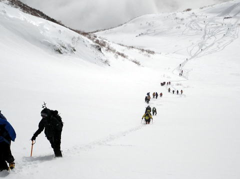 やはりそれまでは何が怖いかがわからないという状態だったと思います。そこから先は必死で、八丁坂ではハレオさんにロープをつないでもらいました。みんな後ろ向きになって、雪の壁を見ながらおりています。