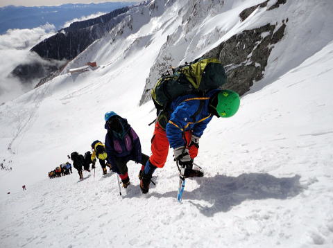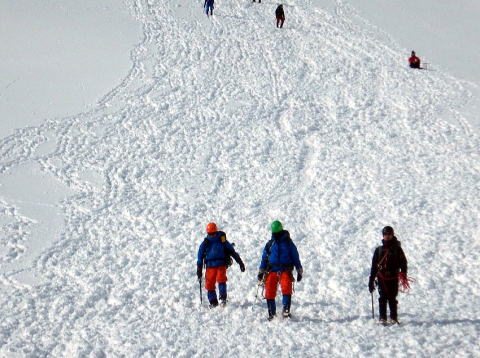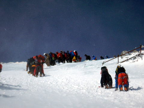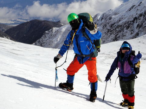 その時は降りることに必死で、目の前の雪の壁しか見えない状況です。上からハレオさんに、1メートル右とか左とか声をかけてもらい、その声だけを頼りにおりていました。あんなに寒かったのに、下りで汗をかいたのですから、よっぽどですね。
