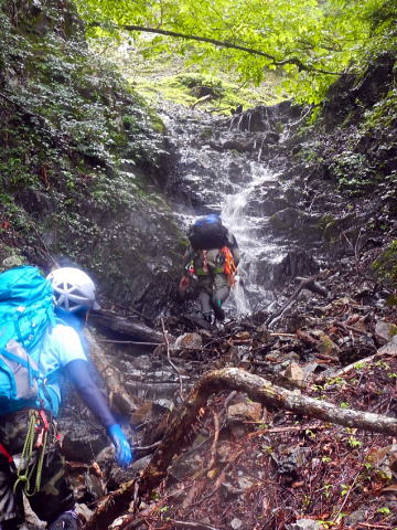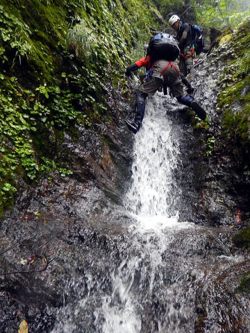 途中から雨も降り出してきましたが、アドレナリン出まくりのおかげで、「楽しい!」となるのは、一種の沢ハイですね。