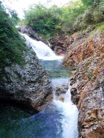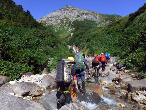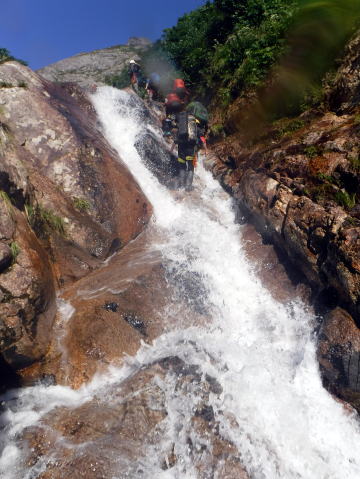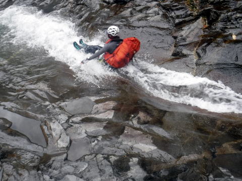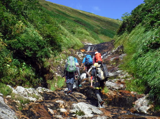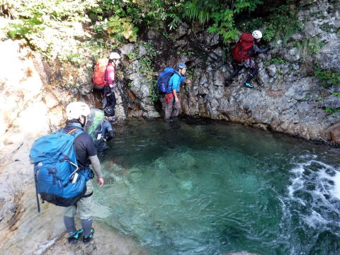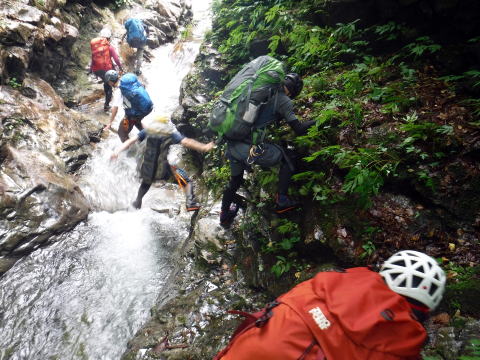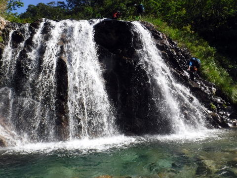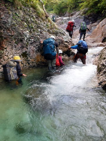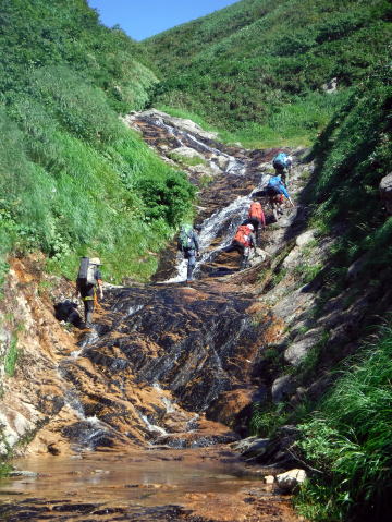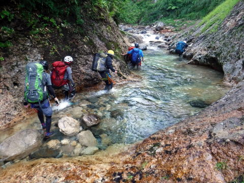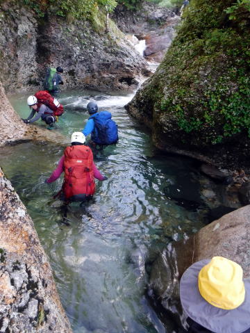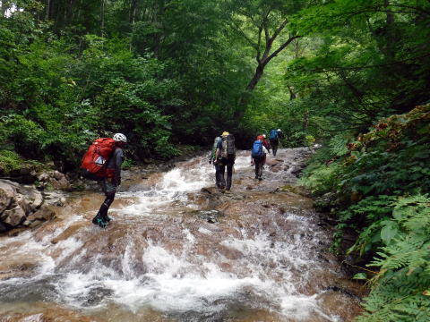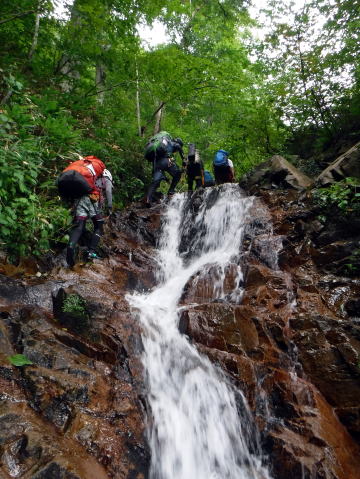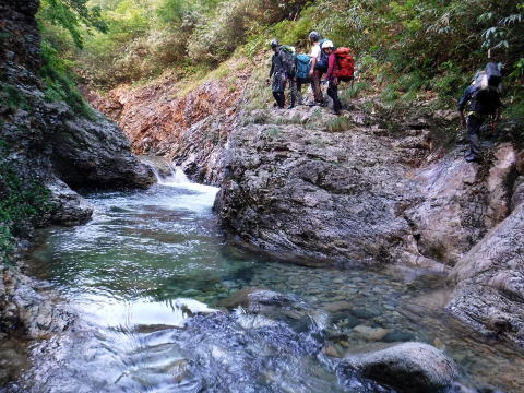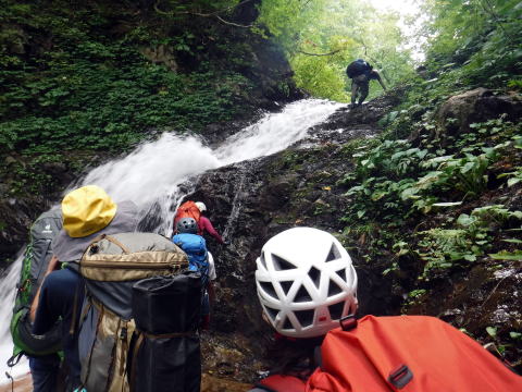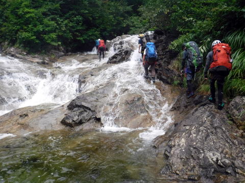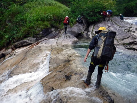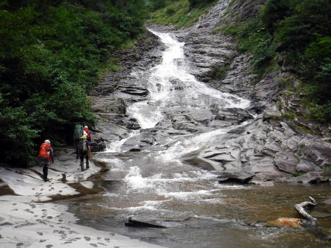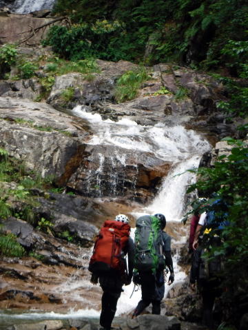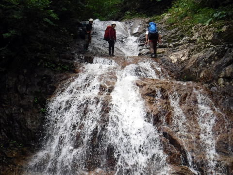 滑り台で楽しむメンバーも居たし、小滝とナメが続く美しい沢。ザイルも全く必要無しで快適に登れ過ぎた。