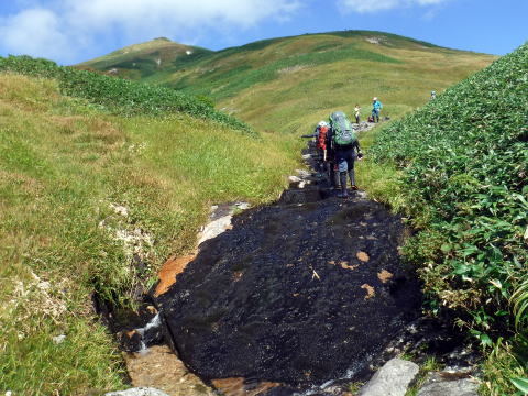 草原の中をナメとナメ滝が続く。