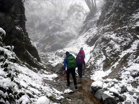 前日に、関東に思わぬ雪が降り、願ってもない雪景色の山行となった。
