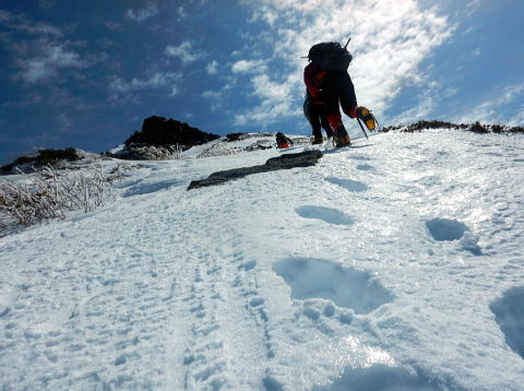 ・山頂アタックの途中、スパッツの下で靴紐が解けていたようでアイゼン歩行中に足が動いて痛かった。しっかり解けないように結ばなければ。