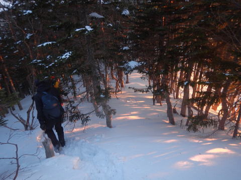 稜線を過ぎて森林の中に入ると風が弱まるので寒さは和らぎました。