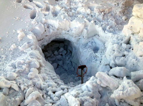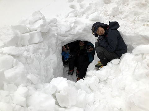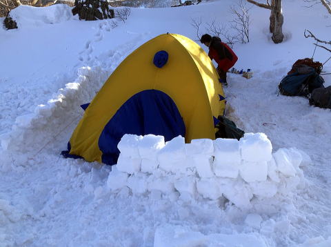 新人W氏が「三匹の子豚風雪壁」を作り、K隊長は雪洞作り。