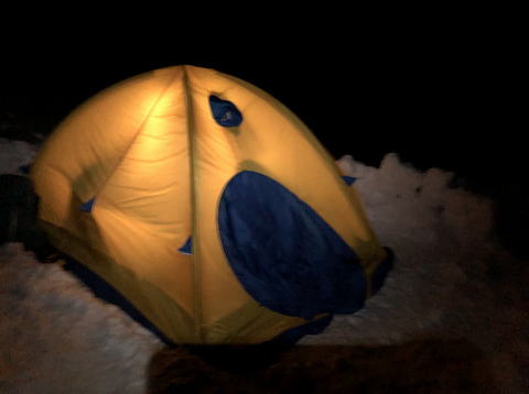 このまま避難小屋近くまで行こうか悩みましたが、風が強くなって来たため、前白根山から 5分ほど戻った所で幕営。