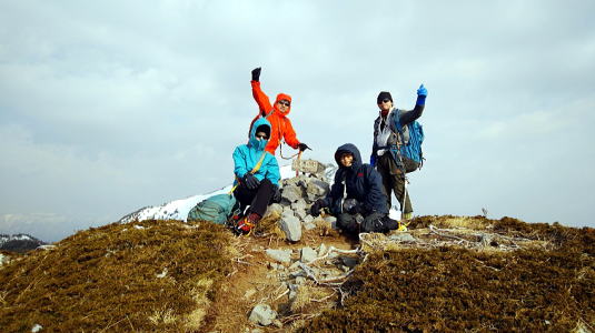 女峰山で強風に煽られたメンバー達も「前回に比べたら...」と余裕顔。