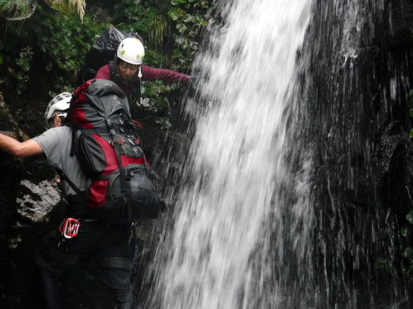 小さな沢の小さな滝を乗り越えて、今日は早めに泊まり場を探しました。