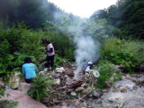遊覧船に乗りダム湖の反対岸まで歩き、一つ沢を登って、一つ沢を下って、やっと目的の中門沢。すごい秘境にやってきてしまったという緊張感。岩ごろごろの場所で寝床を作り、岩の隙間に身体を合わせて横になる。そんなところでも人って寝られるんだなあ・・・自分が野生化していくみたいな感じ。踏み跡も何もないところを地図とコンパスを頼りにツメあげて、ドンピシャの湿原にたどり着けたときの安堵感。そんなことを味わってしまうと、フツーの山登りに戻れるかなあ・・・と心配になってしまうくらいの充実の沢登りでした。