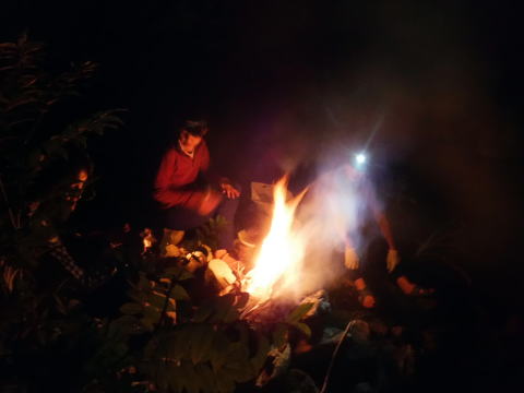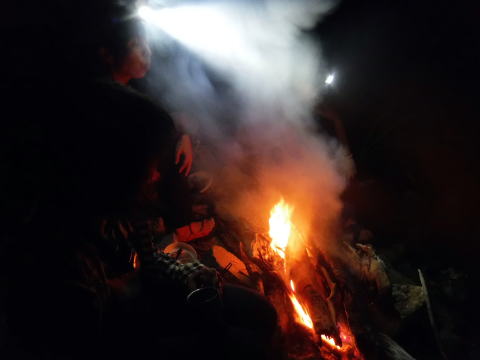 狭い場所だけど、それぞれ焚き火を囲みました。