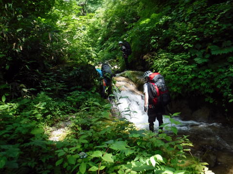 明日は、沢を詰めて尾根を越え、反対側の沢を下って中門沢に入ります。良い天気になりますように。