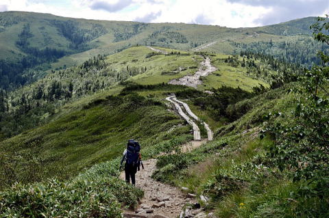 2日目、遠くに見える雲ノ平に向かいますが、ひたすら続くながーい下り。