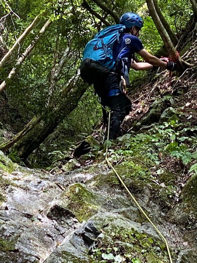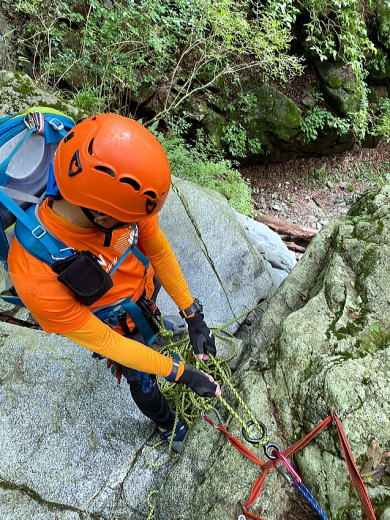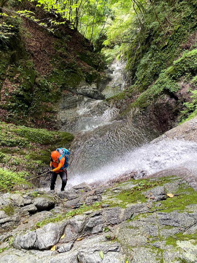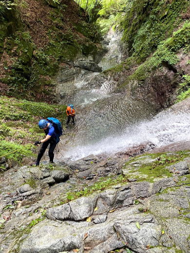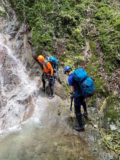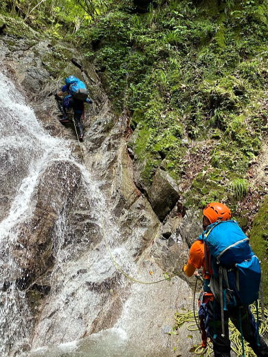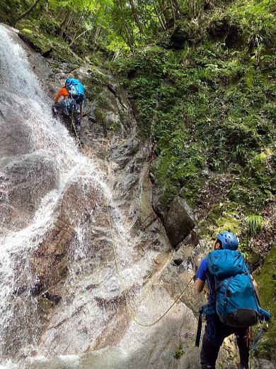 途中で10mほどの滝があり、そこでザイルを出して練習開始。