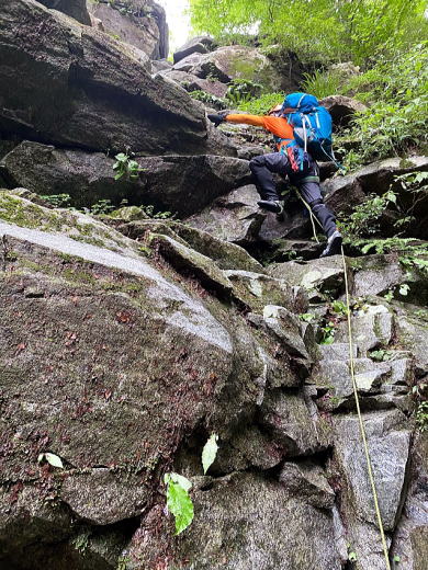 梅雨明けの8月2日、泊まり沢山行を控えてのザイルワーク練習のためマスキ嵐沢へ。