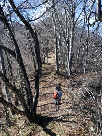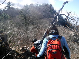 女坂峠を目指し高度を下げる尾根道には途中で切れ落ちた崖もあり