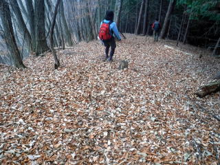 さて、笹子駅方面に下山開始します。それにしても落ち葉でフカフ