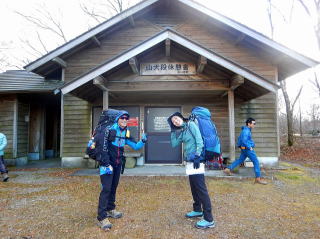 4時半起床。ドラポケさん作のおいしーいうどんを味わい、薄暗い中をいざ出発!避難小屋の外には新しい車が一台、車内には2人の方が。話しかけていただいたのでお話をしていると、どうやら地元の山岳会の方々で、登山道の手入れをしにきたそう。