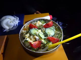 今晩のメニューはポテトサラダとカレー。カレーにはスパイスをちょっと入れすぎてしまいました…。反省。