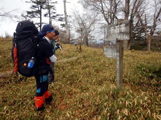 この先の高塚山は人気のある山らしく、踏み跡がしっかりついています。そしてここ辺りから小さい笹がわさわさと。笹の朝露に濡れて登山靴もぴかぴかに。三合山に到着すると、なんとなーく人の気配が薄くなります。鹿や狸かな?動物のフンもたくさん確認できます。
