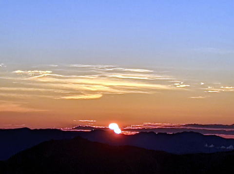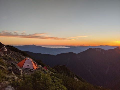 朝目が覚めると、外が明るい…??!テントから覗くと広がる雲海。そして日が昇り、ご来光まで見られました。昨日は景色が全く見えなかったので、テン場や小屋の様子を確認できました。