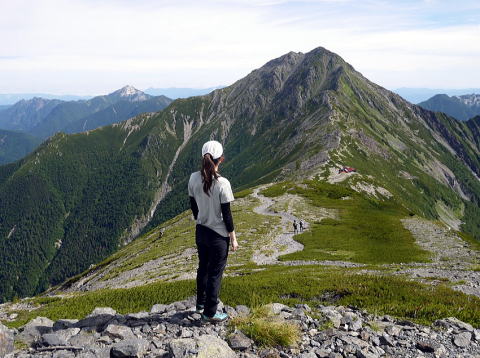 さらに足を進め、間ノ岳へ。途中、NHKにっぽん百名山の撮影クルーに遭遇。何やら一生懸命崖を撮影していました。機材が重そうでただただ尊敬。こういう仕事、私もしてみたいです…。放送は10月6日だとか。