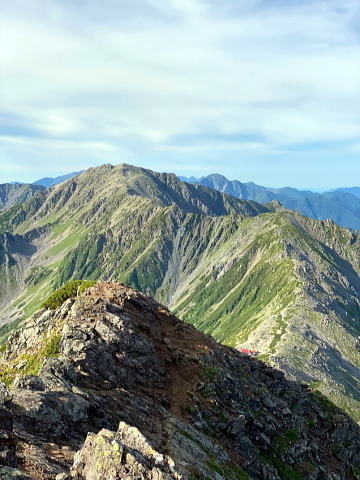 親鳥が子供達に何かを伝えるように鳴いていて、とても癒されました。2日連続でライチョウに会え、私のテンションは爆上がりです。この中白峰山からは、仙丈と甲斐駒がドドーーン!と見え、とても良いお山でした♪