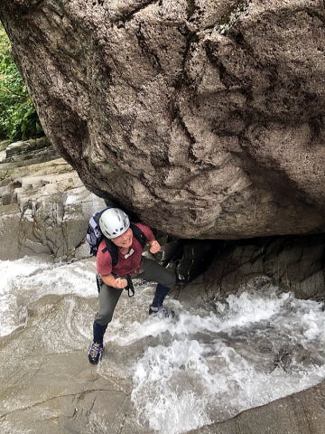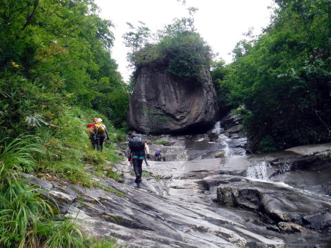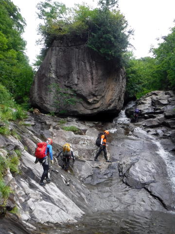 ナメ滝の最後に奇岩が待っています。右を抜けていきます。